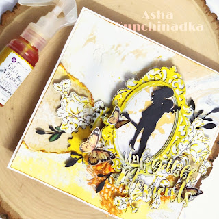 For making yellow, i have coloured the chipboard embellishments with white paint and added layer of sunshine yellow paste and some of the embellishments i have used prima spray.